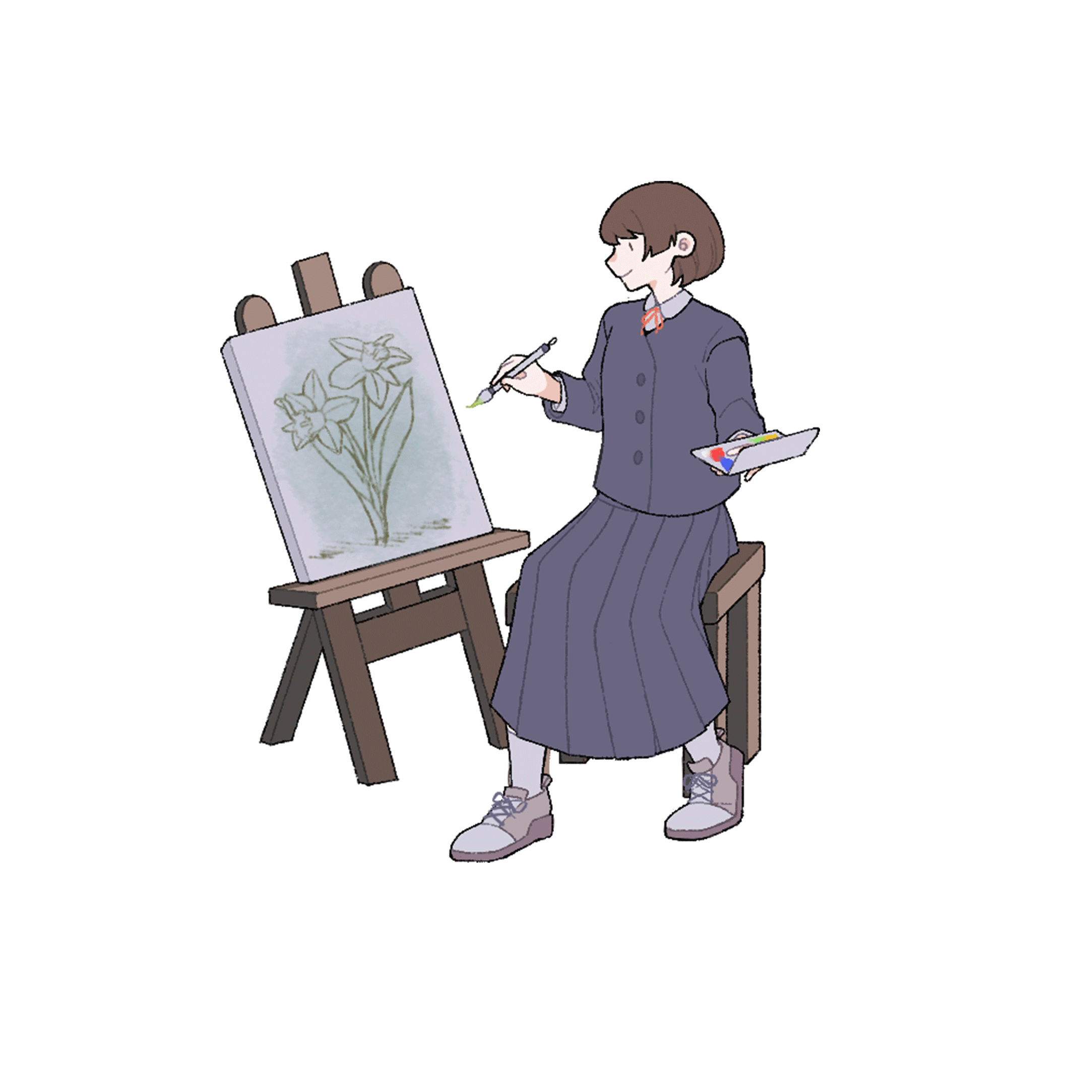 「画力向上」を目標に掲げ、印旛郡市中学校美術部展(佐倉市立美術館に展示)への出品を目指し、日々制作に励んでいます。体育祭や青雲祭のスローガンフラッグの作成など、学校行事にも貢献しています。